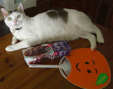 It’s very hot in Hong Kong. How do you enjoy the summer? The Olympic games were fantastic, but I prefer to curl up in front of and watch the action on the television. I got special presents from Uncle in Japan. Look at this! These are my favourite snacks “Hoshi kama”. The snakes give me extra power so, I am very fine hot summer day!